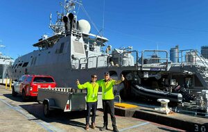 • La Marine nationale et le patrouilleur d’Outre-mer Auguste Bénébig avec commandant David Sanad qui ont assuré le transport du matériel.